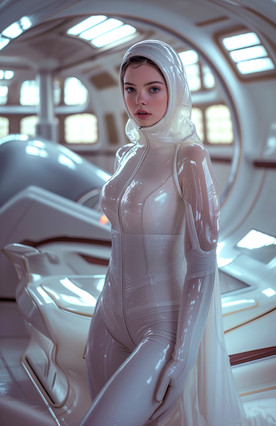 #scifi #cosplay #superheroine #beauty #space #cape #glossy #hood #mask #spacesuit