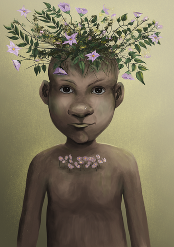 Beautiful. The kid has a look in his eye that makes him appear much wiser and older than his is. It seems to have so much deeper meaning than just a glance can prove. The head peice was meant to be the focal and is. The colors are just beautiful! I love it.