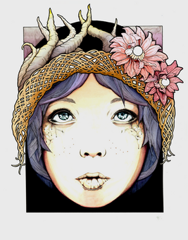 The texture is lovely. I can see the freckles on his nose and chest, the threads in the ribbon and the roughness of the feather. :mesmerized: Everyone raves about how bright the colors of the flowers and headband are, but I love how there's just enough brown in his skin to separate him from the background and the blue in his eye - so perfect.