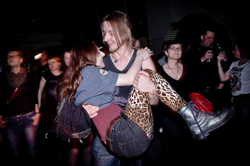 What is it with long-haired guys and no shirts? Here in the US they do that all the time. When it's warm out, I mean. Never seen one with face paint though....XD