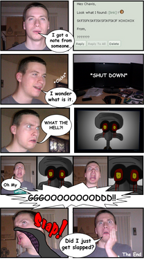 Your expression in panel 1 & 3 are really creepy.... Nice comic by the way!