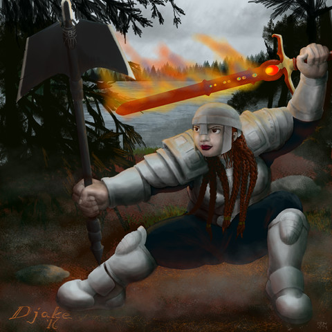 The background that you painted is lovely, and I like all the details on her armor.