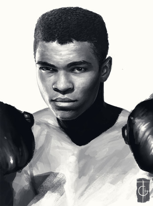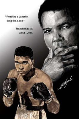 This digital portrait aims at paying tribute to this big sportsman who learnt "to fly as a butterfly and to fall as a bee".