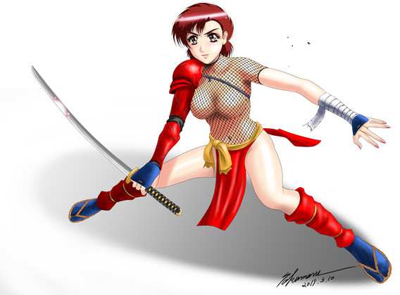 Nagi Kirishima is copyright to Hudson Soft.Another try out different painting types, using a couple of different art programs. Here is a combination piece of two different artworks I did of Nagi from Bloody Roar. Never get sick of drawing her. She is very much a Spurious trying to be a Spider Lady in that dress.