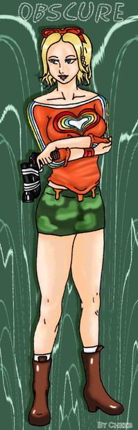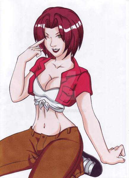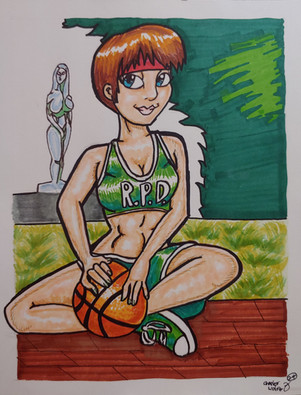 Rebecca Chambers is copyright to Capcom.I remembered the picture you get from Captain Wesker's desk in Resident Evil 2 if you keep pressing 50 times - its of Rebecca in a basketball uniform. Was a sweet image. This is in homage of that picture.