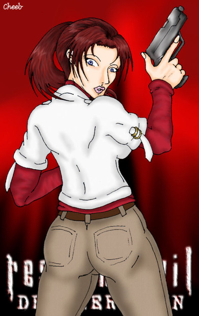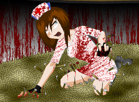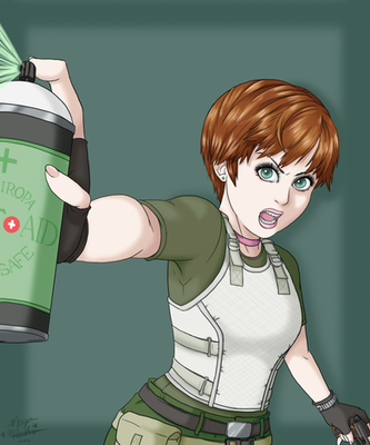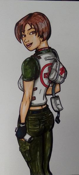 Rebecca Chambers is copyright to Capcom.Artwork of the young nurse. Originally a different artwork of a girl in her underwear on a dance floor. Was re-drawn in PSP and dressed up to become Rebecca. This is version A - a simple cross variation.
