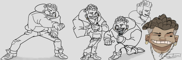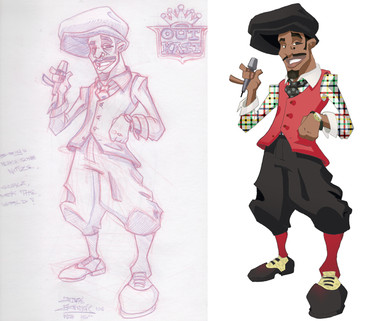 I was asked to assist in designing the main character for a Disney cartoon awhile back, but they never responded back after Tony Washington, and I sent our versions of the character in...On the left I was trying out different hair-doos, and on the right is a full view of the kid's body. On his shirt I was giving props to Tony's band, Red LLama Dawg.