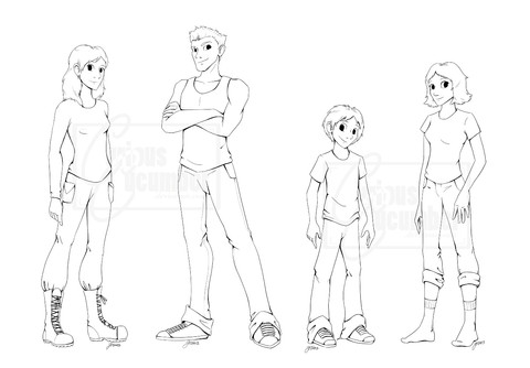 What I really like is how you can take a similar form and change it into a new and unique character with a different personality and attitude. I think it was this page of designs that I stayed on the longest in your book. Do you use a "template" body form and alter it into different characters when you design sometimes? Is it a personal challenge for yourself or a means to extend information that is given to you on a project? The two happy boys are my favorites.