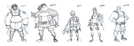 Wow, great designs. I especially like the third person. He's got a good expression and stance, and i don't know, for some reason i feel like i could be good friends with him. Is that weird?