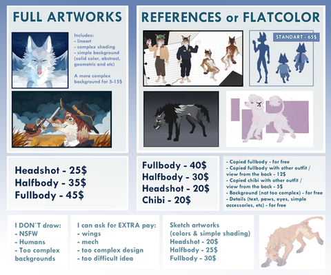 This commission sheet and its description may change as time goes on. If you have any questions or concerns, feel free to note me. Thank you for your patience!