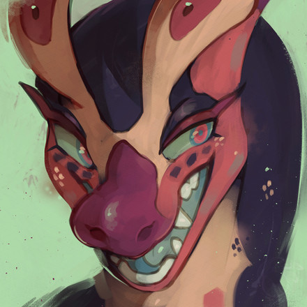 Especially the combination of the blue eye and red/violet skin~
