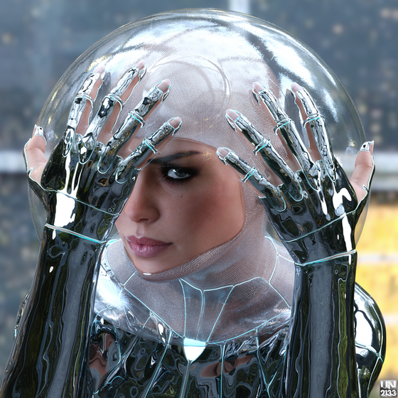 Geez, how do you imagine this stuff?! I've rendered this 'suit' before and I would never have thought about creating something this intricate with it.