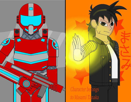 His cybernetic eye is connecting to his prosthetic arm so that he can transform his right arm into a cyber sword, hook, claw, drill, minigun, and mega buster. His cyber eye grants night vision and a scanner. The scanner allows him to scan tools and weapons so he gets a new arm form or upgrades his arm forms like a taser hook and grappling claw. Wearing a mask will enhance his night vision, scanner, and x-ray.