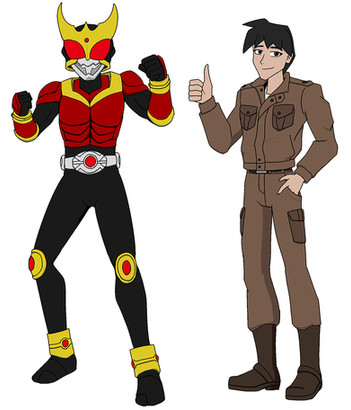 He is a prince of the planet Edenoi. When his evil uncle, Count Dregon, attack his home world, he was gifted by his grandfather, King Lexian, the power of the Mask Rider RX. later, he was sent to Earth, as Count Dregon's next planet to conquer, to protect it. He will soon team up with the Mask Riders Warriors and gain new technique such as the giant form.