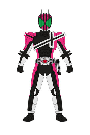 My take on Kamen Rider Decade Complete Form 21On right side, he has double black scarves behind his cape.