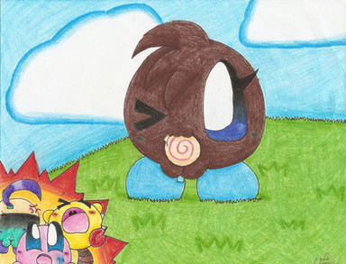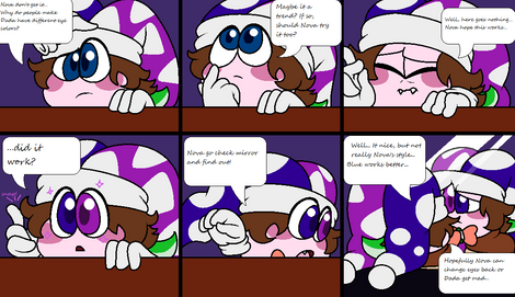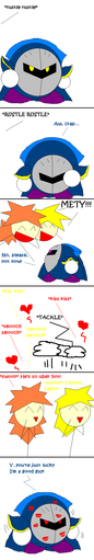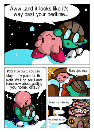 Finally! I was playing Kirby's Adventure when I encountered an enemy called Bubbles . They were really cute and this comic popped into my head. Once again I have new fan characters, but it was worth it since I can make ball puns now. Hehehe, Baula and Balter. Tell me if you get their names.Baula, Balter © (me)