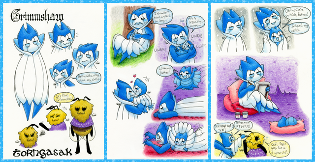 Griswalda and Elliot’s 3rd child, Grimmshaw! They’re a Tundra Grimm and Diving Beetle hybrid.
