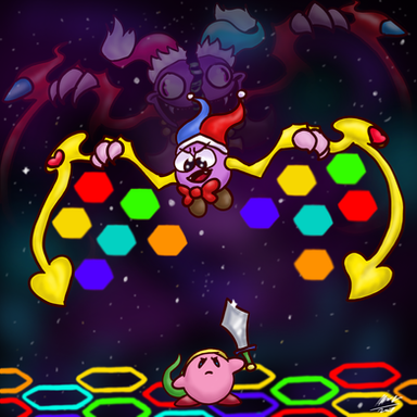 A pic I've been working on for a while! OMG I'M DONE!!!! I put so much effort into it and it turned out so good! I pit Yo-Yo Kirby because I beat Kirby Super Star Ultra with him first.Art belongs to (me)