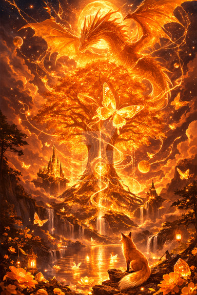 Suddenly, a sound of cracking torn through the silence as a blazing life burst out of the chrysalis, the original chaos is divided, give birth to light and shadow, sky and land, life and death.