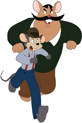 This kid seems like a tough cookie with a long American history, and presumably voiced by Pat Musick, a more distinguished voice from Tony. See him working the cart at the Nielsen Dairies cheese factory? Now that's a beef-cheese-cake! Must be a rival for Fievel and/or Tony.An American Tail owned by © Universal.