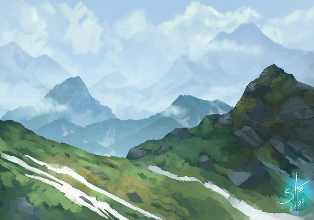 #digitalart #digitalpainting #grassyfield #landscape #landscapepainting #painting #practice #procreate #sky #artstudy #digitalartpainting #paintingprocess #procreateart #mountains