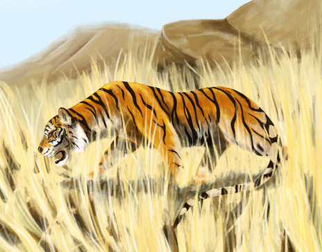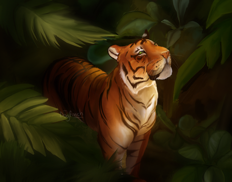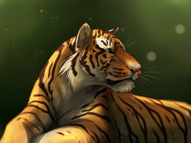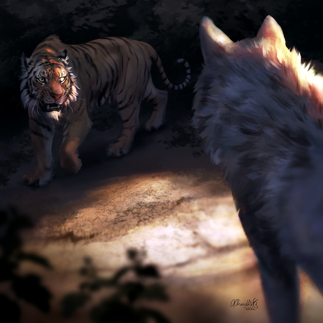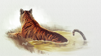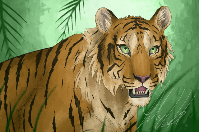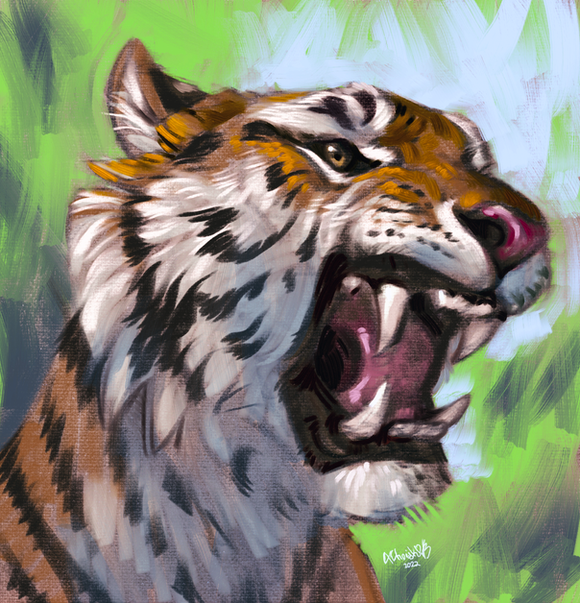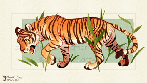 A tiger for day 25 ofย #febroary2021 ย ๐ฏ.I didn't realise one of the legs looked very broken until I stood away from it for a bit. Small 'anatomy breaking' is ok when I'm going more stylised but it really looked off so I changed it at the last minute xD.ย