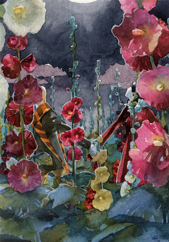 Ahhh! Wonderful watercolors!! The colors off the flowers are perfect for this piece! Good job!
