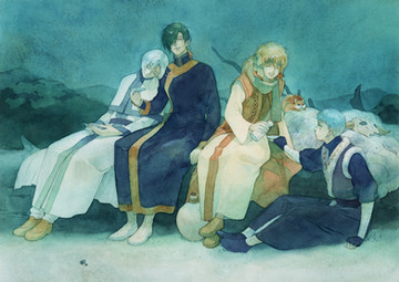The style,the poses and the sleeping man kinda reminds me of painting thisΒ en.wikipedia.org/wiki/Heraclitβ¦