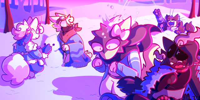 Noodle skittered out of bed, unraveling herself from the blanket mound that sat on her mattress. Winter had to be one of her most cherished seasons; peering out the window, she took notice to the sheets of snow that blanketed the earth as far as the horizon. Noodle fixed herself an outfit, coiling a scarf around her neck and watching snowflakes descend gracefully into the heap below. She advanced to the hallways, utter bliss surging in her optics. She passed Alma, who was swamped in chores. Wynglings were circling her like sharks, and she paused to observe them. Noodle fitted herself with a coat as Alma acknowledged her, "Going so soon, Noodle?" She cooed, and took a wyngling into her arms. "Hi Alma!" She greeted her with a warm smile, "Yeah, It's snowing out!" Alma craned her neck to the window and frowned, "I heard there was a blizzard coming soon." She remarked, cradling the wyngling before ushering them to their room. "And didn't you hear what happened to the nova tree? And the disease? You might get sick out there!" Noodle caressed her claws together, sharing the same bothered expression Alma had for a moment, then zipped her coat. "I don't think I'd be out for that long, Alma," She replied. "Besides, I haven't touched anyone whose sick I don't think.." Alma flicked her tail and approached Noodle, clutching her arms. "It spreads through magic too, so be sure to keep your mouth covered. Stay safe, child." She murmured. Noodle nodded defiantly, and hugged Alma. "Thank you!" She purred. "Oh! Don't forget these." Alma presented her with knitted mittens. Noodle grinned, and slipped them on. "Thank you!" Noodle beamed and set off into town, waving a goodbye with her new mittens.