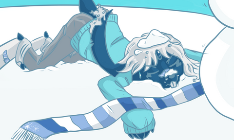 "Anyone!" The voice pleaded, "Help!" Noodle glared, attempting to concentrate on the sound. For a moment her glands would spark a golden hue before blinking off again. The wind howled in her ears, and her glands would blink consistently. The voice proceeded in a shriek of alarm. She called out for the voice, "Hold on!" The wind was flushed in her face, she halted to a trail of footprints hailing towards the voice. She heaved, and chased the imprints, her breath hot against the frigid climate that engulfed her. Noodle found herself at a clearing, trembling at the lack of clothing that secured her legs from the snow, and craned her neck at the scene that laid before her.