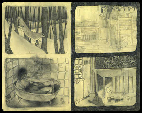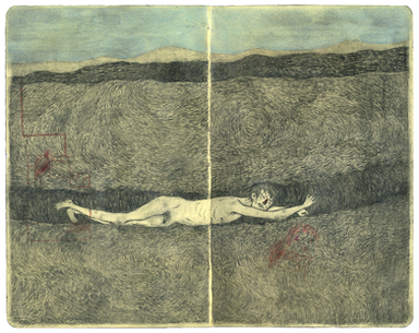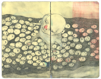 This is interesting.. eerie in its simplicity. I love how.. understated? your style is. Just out of curiosity, what is this drawn on? Is it the binding of a notebook?