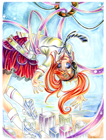 Lovely! So much detail, flowing dress and hair, flying feathers. Love the perspective!