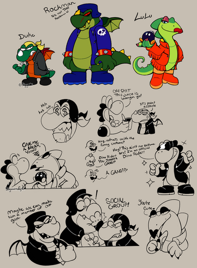 made another new mario oc :3Raptis are the distant cousins of Yoshis. While Yoshis have a more rounded and smooth body, Raptis are more slender and fluffier. Raptis also live off of vegetables, much like how the Yoshis live off of fruit. Unlike their distant cousins, Raptis are gifted flyers and mostly live in high places like caves in the side of mountains.