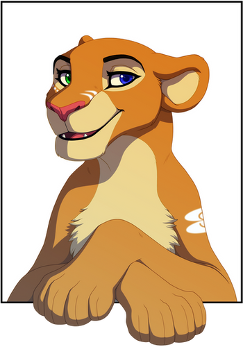Ahhh! It's the most adorable lion ever! I love her colors. and wow, the eye color, you would think that would look weird to have pinkish eyes, BUT it looks totally rad! Beautiful, too beautiful. This is such a great picture... I totally admire your skill.