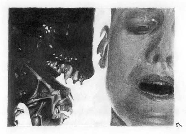 This is my favorite of your wonderful detailed drawings so far and also because i really like Aliens. I like how smooth you color and blend with the pencils. Also a nice contrast between the Alien with those saliva dripping teeth and Ripley