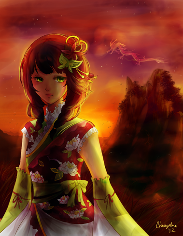 PFFFT- WHAT IS THIS AMAZING PRO TALENT I SEE ASDAFDSF THE BACKGROUND---- It looks so beautiful and amazing Asadf /// All the colors in the sky <3333 The girl is so pretty and cute Her hair looks so soft /// ASDFGHJ TEACH ME YOUR WAYS