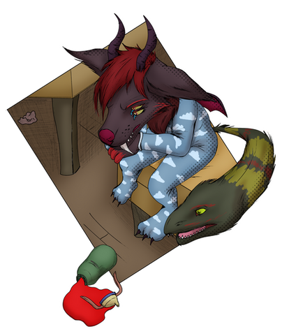 Poor kiddo, he doesn't look too good, hopefully, he pulls through. Really love the lighting in this it sets a really great mood! Thanks a ton for adding Jabu to your piece!