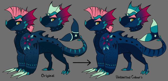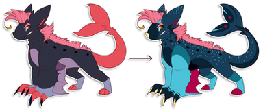 ○ Of Note: Split Brow, Finn Tail, Webbed Head Frill, Deela Glands and Leaf Markings