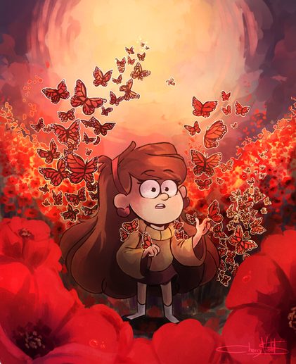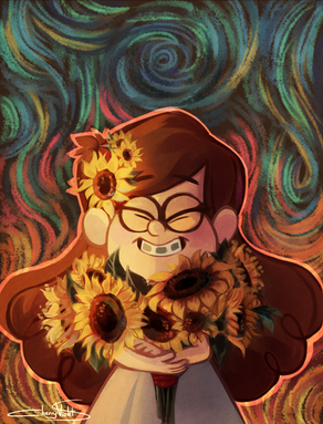 Even with the deluge of fanart for this awesome show this pretty and very adorable Mabel picture stood out. I like the skinnier proportions in the styling and that we can see a bit of neck. (Maybe that'll help her finally snag a vampire boyfriend. ) For an instant KND came to mind but this isn't nearly as exaggerated... and plus she's actually quite beautiful; but the facial structure and proportions are utterly wonderful all on their own. Even the stars want to flutter down from the sky to give her a kiss. Let's hope there's nothing in Dipper's book that will make him rush out and try to stop them from giving her a peck on the cheek. (Assuming that they're not as hot as real stars.)