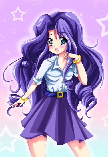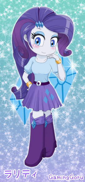 Rarity's costume is primarily based on the official humanized Rarity from Equestria Girls.