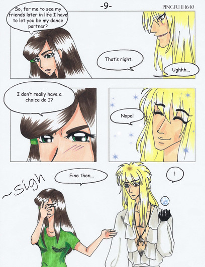 As usual...this is amazing! I love your character, she's got spunk and Jareth is really in character. Beautiful panels and I'll be waiting happily for the next panel after the convention. Have a wonderful and a wonderful time!