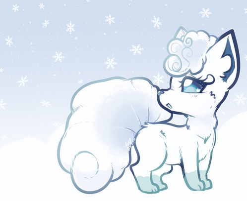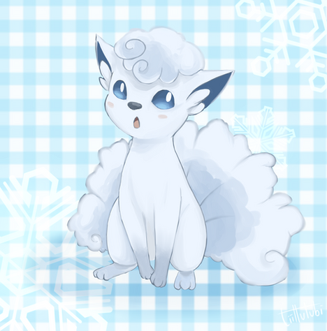 Alolan vulpix is one of my favourite pokemon, I have so many of them :')For this drawing I took inspiration from a beautiful drawing of vulpix with a lot of bows that I've saw while browsing internet, but I hope I didn't make mine too similar to it ^^".