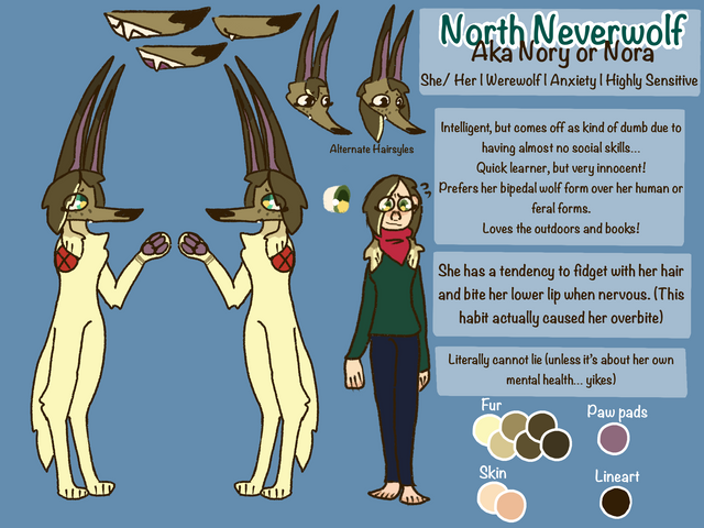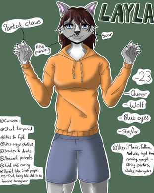 I made a wolf oc for a project I might be working on, there's not much info for her yet but for now I just made this reference sheet for her and I'm really proud of how she turned out!Related content
