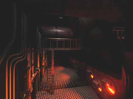 One of sever al rooms of this unnecessiarly old and large space ship I am working on. Ill most likely be posting the others too as I finish them. Anyway, This is supposed to be the power transfer room - Basicaly its a room of pipes that the drive shaft (why ever a space ship needs a drive shaft I dont know) passes through. Anyway, Im almost ready to call it finished, but I think that it still needs something. If anybody has any ideas on what I can do to make this look somewhat finalized, please drop me a note. Thanks-Chiaroscuro
