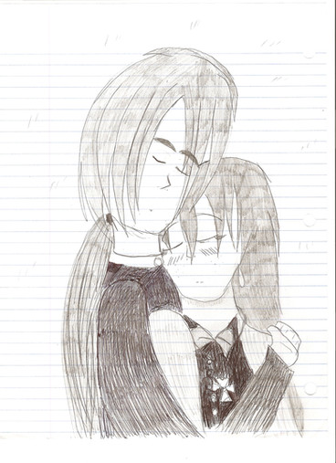 I'm part of a Castlevania text-based rpg called Castlevania Disharmony which takes place in the timeline after CV64. The characters featured above are the seer Jennifer Hamilton and the occultist/dark lord candidate Graham Drake. Yes, there is chemistry between the two ^_^. However, this is a rough sketch to the moment before their first kiss. I used pencil then pen. It may be a work in progress as the Drake character has told me the hands are drawn a little bit big.*shrugs* He tells me I have the overall feeling there and that he's seen great artists who can't capture feelings.