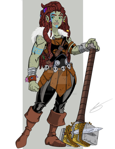this is Daelee (Day-Le) she is my half orc druid.she is a bit of a klutz but she means well, her campaign is gonna end soon but i still love her!