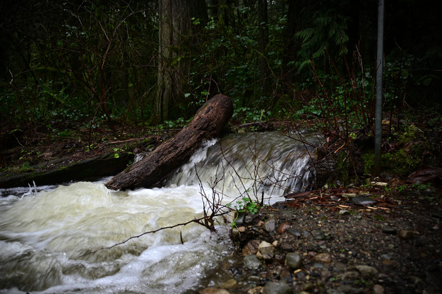 and it was raining really hard one day and the water was flowing over this log that was in the ditch, and i thought it looked cool, so i took some pictures