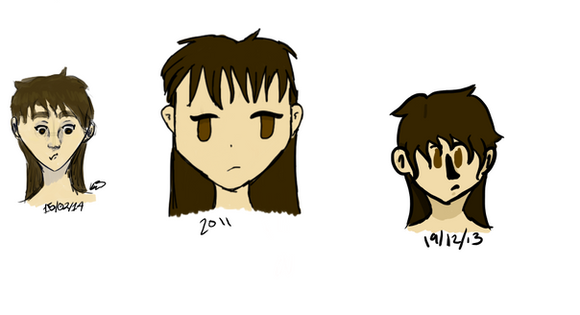 Interesting idea to draw the same girl in different styles you have had through times. Your styles are little bit differents in different ages, but there can still see that it is the same girl.