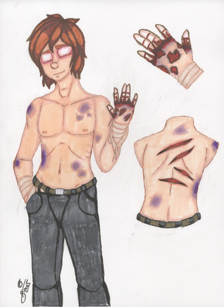 Alex was left on the doorstep of an older woman who happily took care of him adopting him as her own. As Alex got older they found he had hemophilia. Alex lived a very careful life up until he was seventeen years old. He was sent out to the store to pick up some ingredients for his grandmother, as he called her, by time he had gotten back he noticed someone had broken into the house. When investigating he found his grandmother dead. Hearing foot steps from behind he knew they were still in the house and out of rage went to take them on, only to accidentally get killed by one of them via the axe to the head.