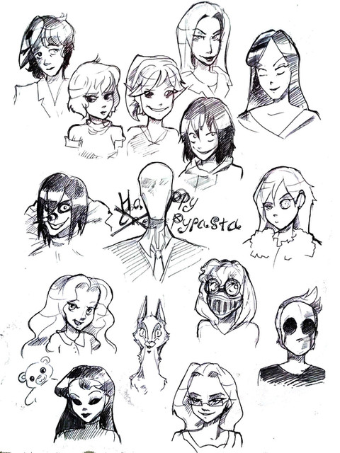 so theirs slender,Jeff,lazari,stripes,sadiya,puppeteer,eyeless jack,laughing jack,ben,masky,hoodie,Toby,evil,the rake,sally,jane,lulu,alex,rodger but i dont know who are the othersΒ